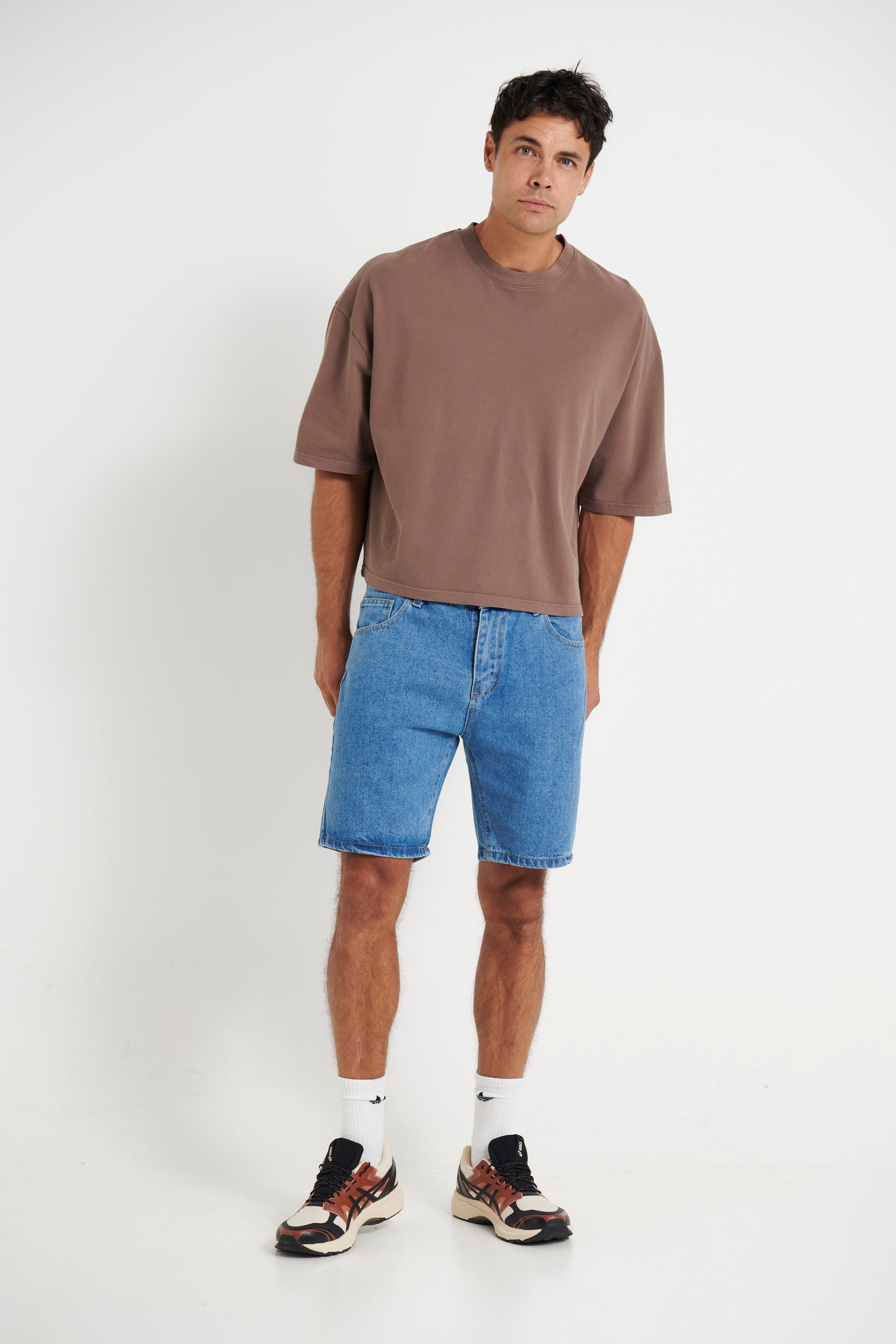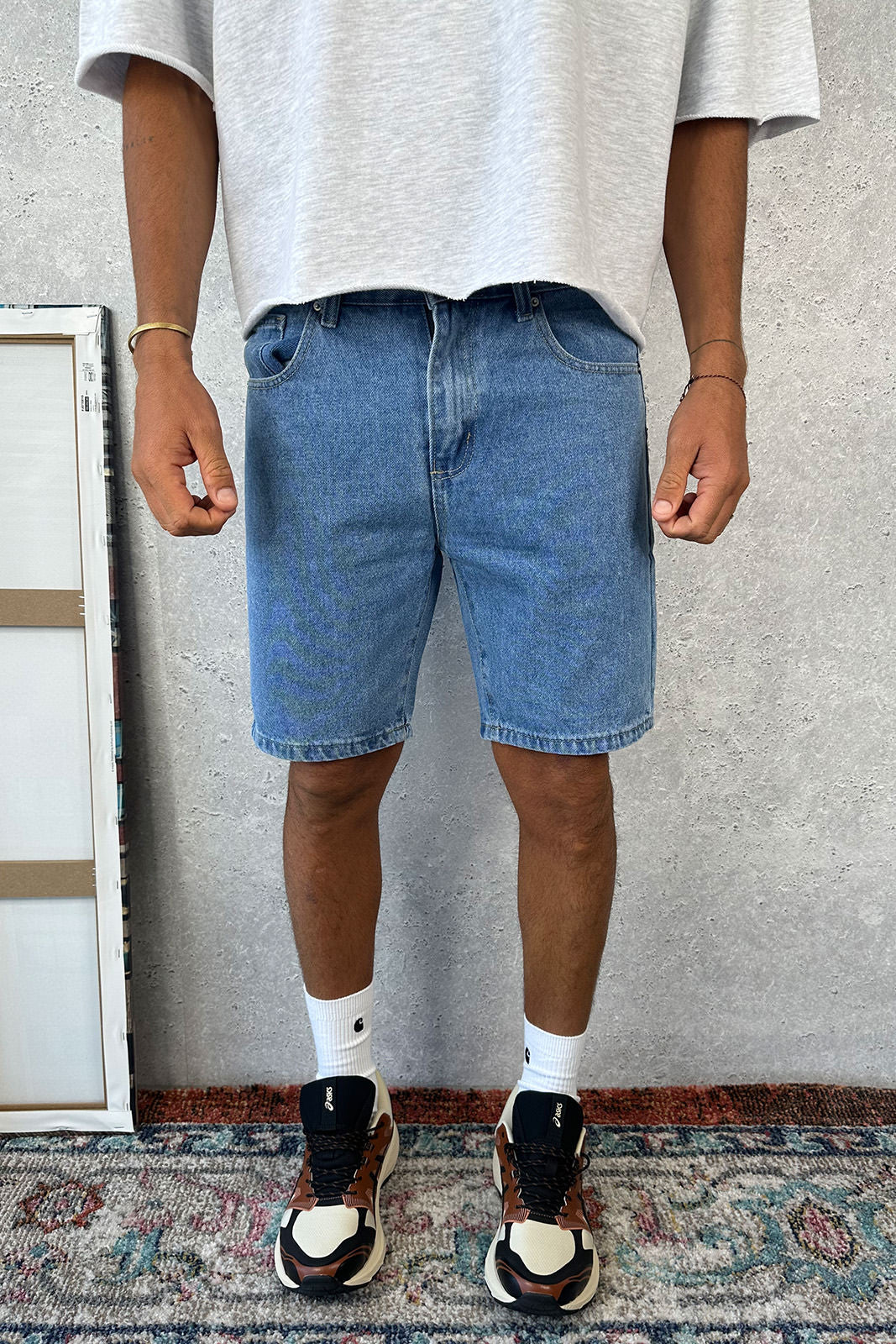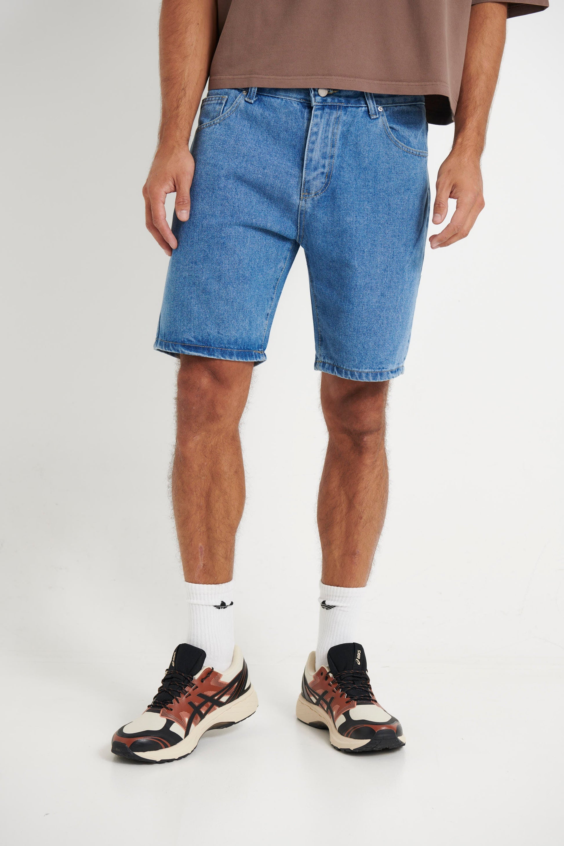 The Andre Relaxed Denim Short, Featuring a regular fit and classic straight leg silhouette, these jeans are crafted from washed back denim for a lived-in look. Designed with double pockets at the front and back, belt loops, and finished with a durable YKK zip closure for everyday ease