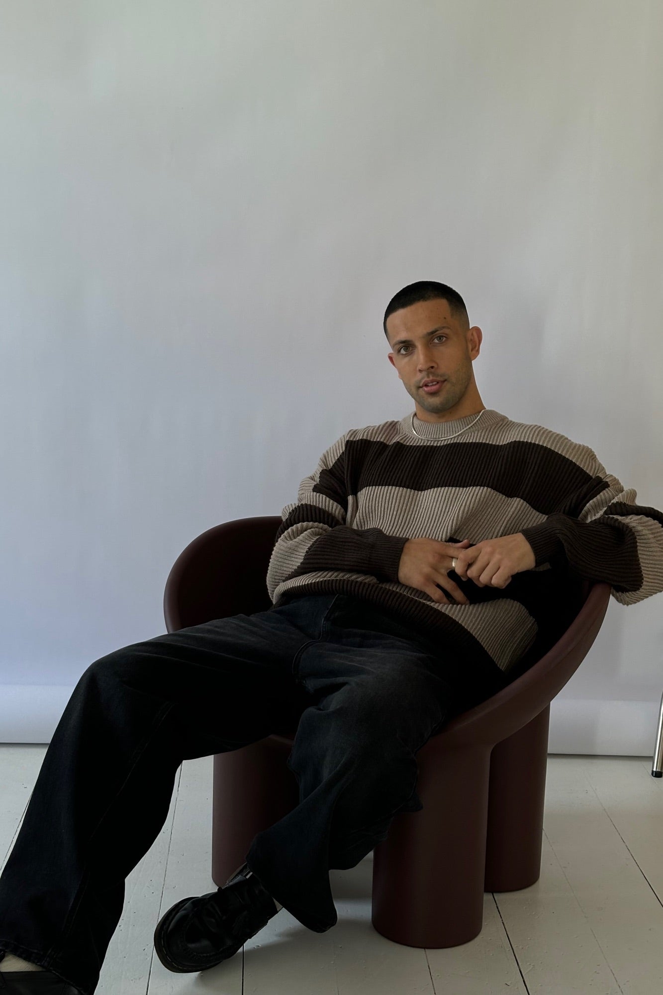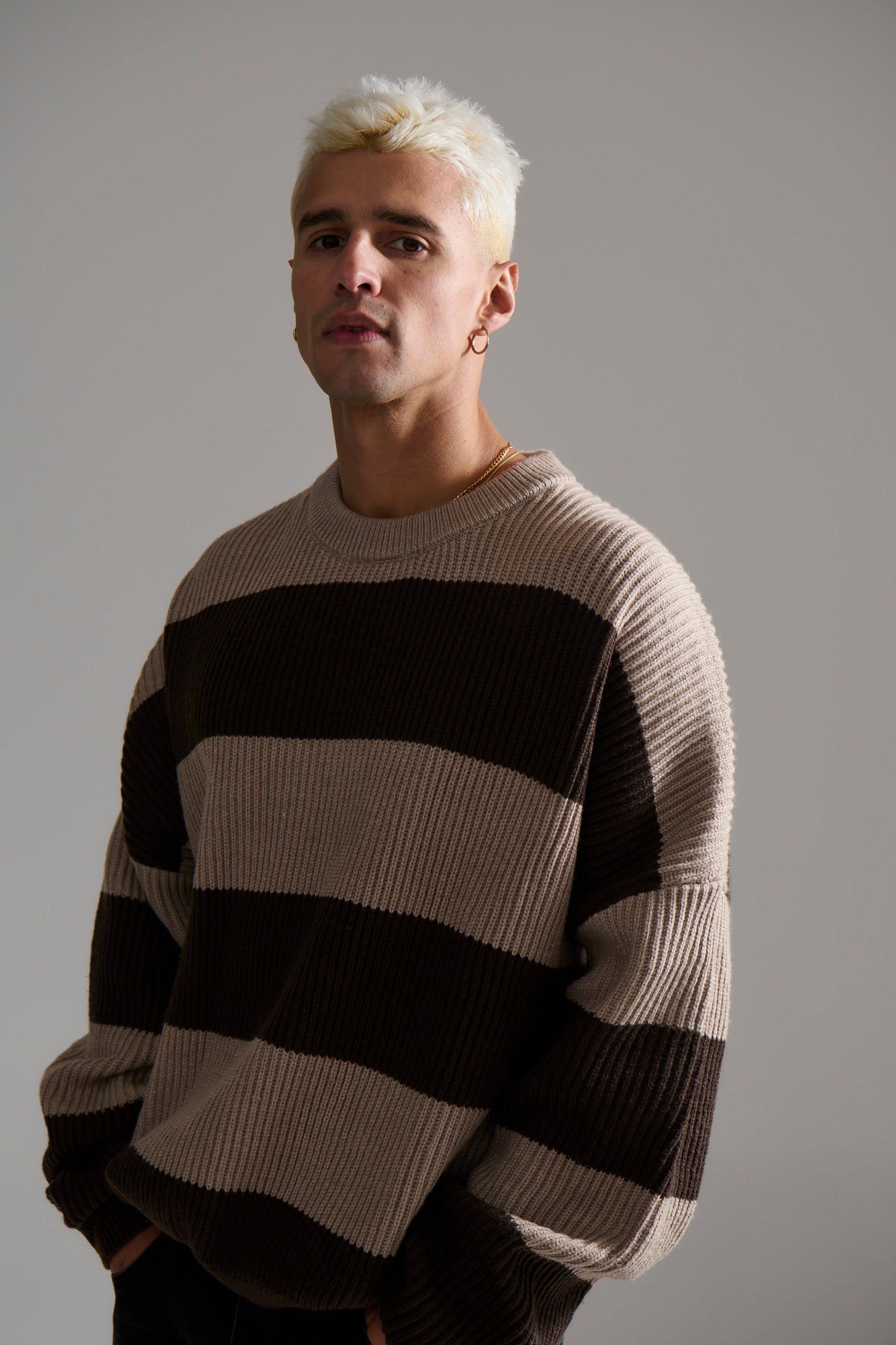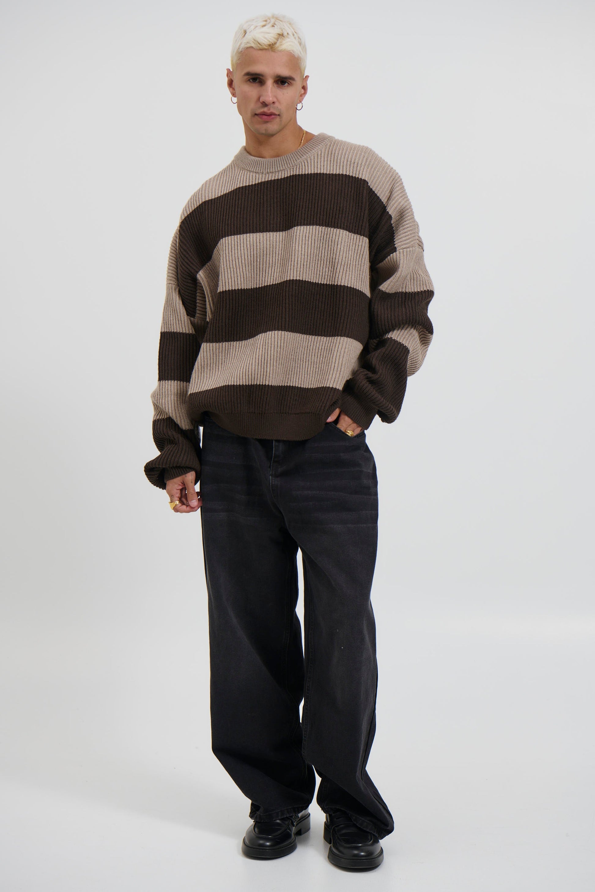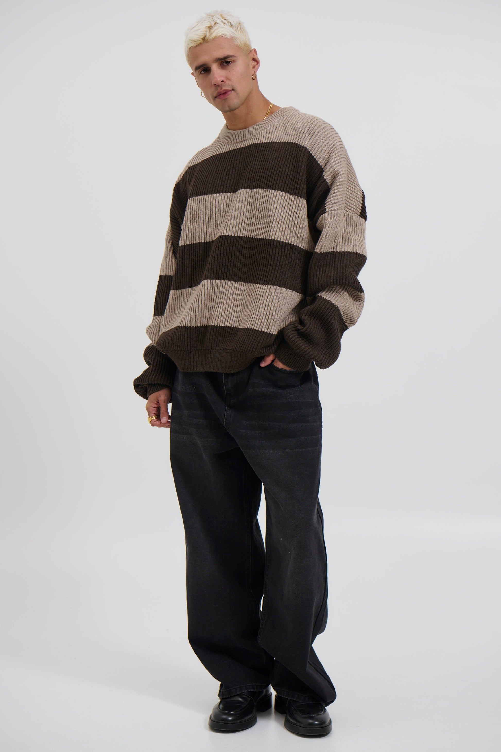 Drop Sleeve Heavy Knit Choc Stripe