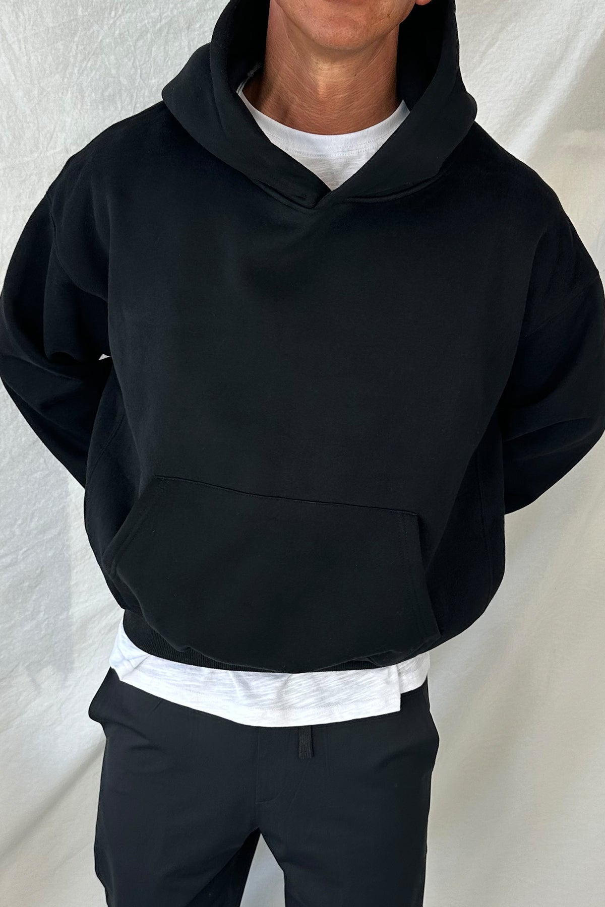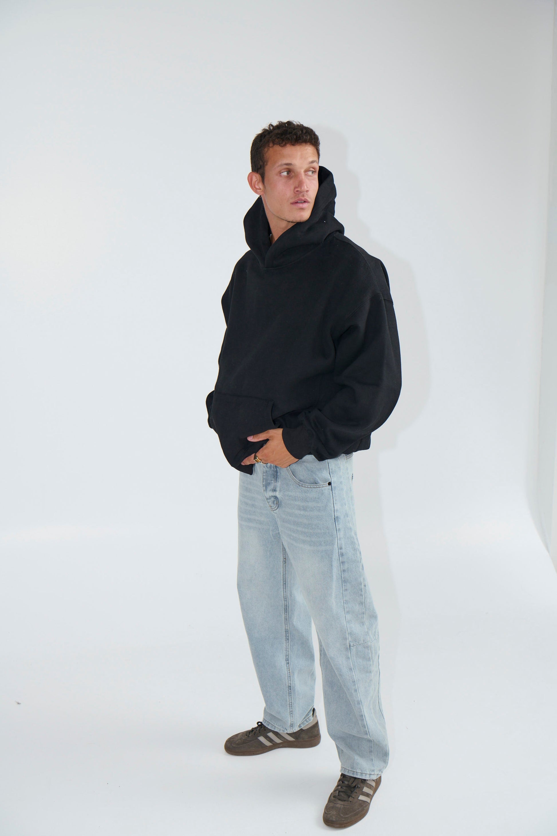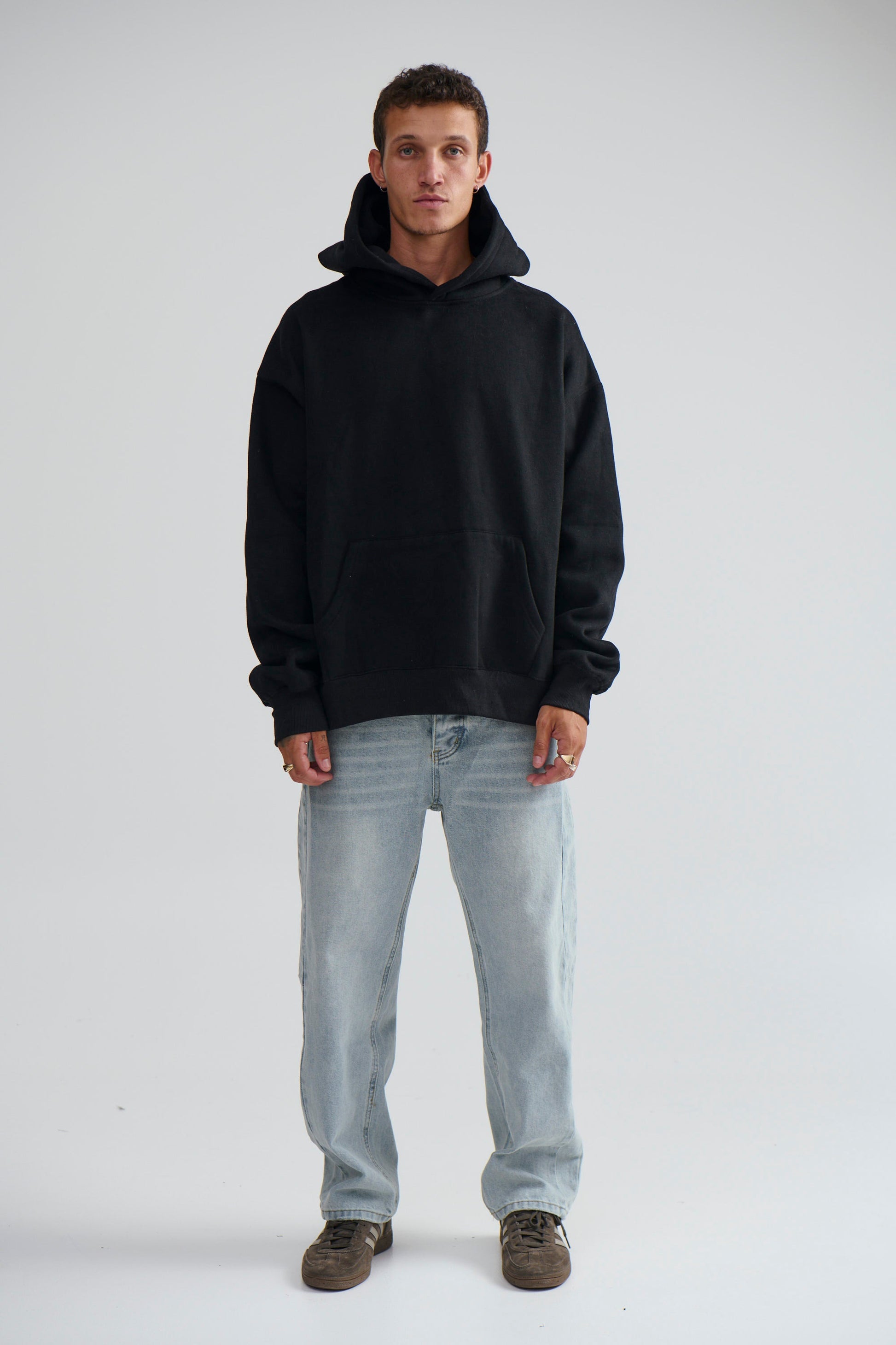 The Heavyweight Comfort Hoodie, features a relaxed fit, adjustable drawstring hood, and a spacious kangaroo pocket for convenience. Ribbed cuffs and hem provide a snug finish, making it perfect for casual layering or everyday wear.