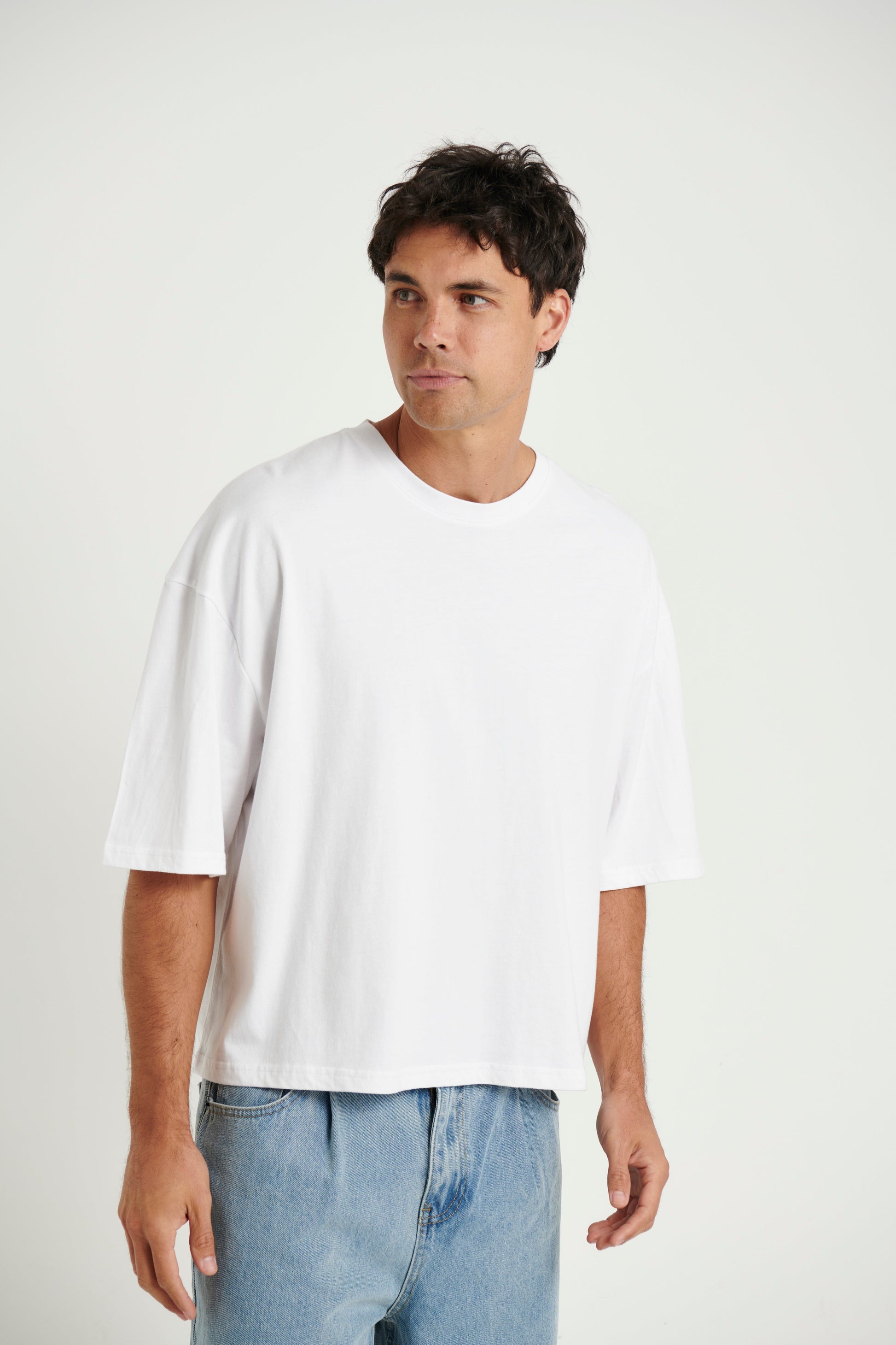 NTH Crop Box Tee is a crew neck tee that boasts a drop shoulder design, slightly oversized fit, and a cropped silhouette. This tee is made from 200 GSM heavy cotton fabric, providing both comfort and durability.