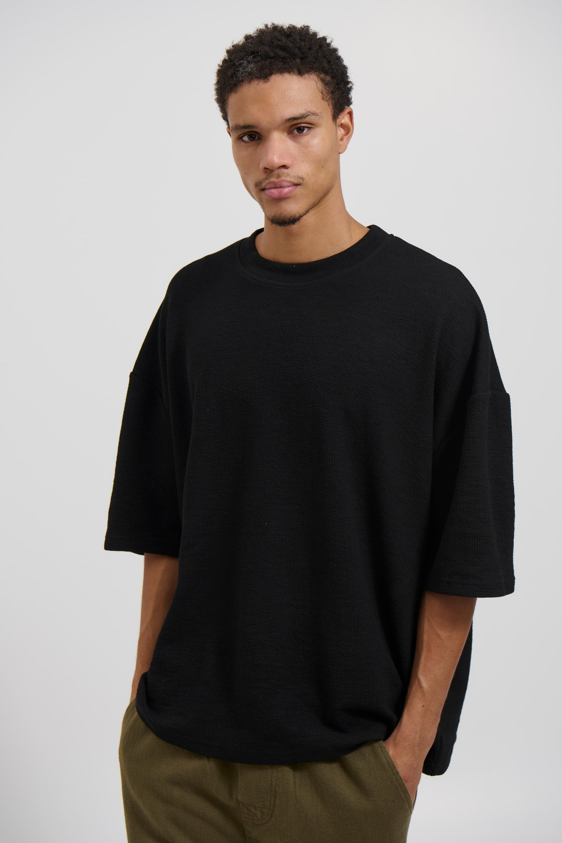 The NTH Heavy Ribbed Tee offers a slightly oversized fit with a drop shoulder design and a crew neck with binding. Made from waffle fabric, this tee boasts a luxurious, soft texture and weighs 350GSM.